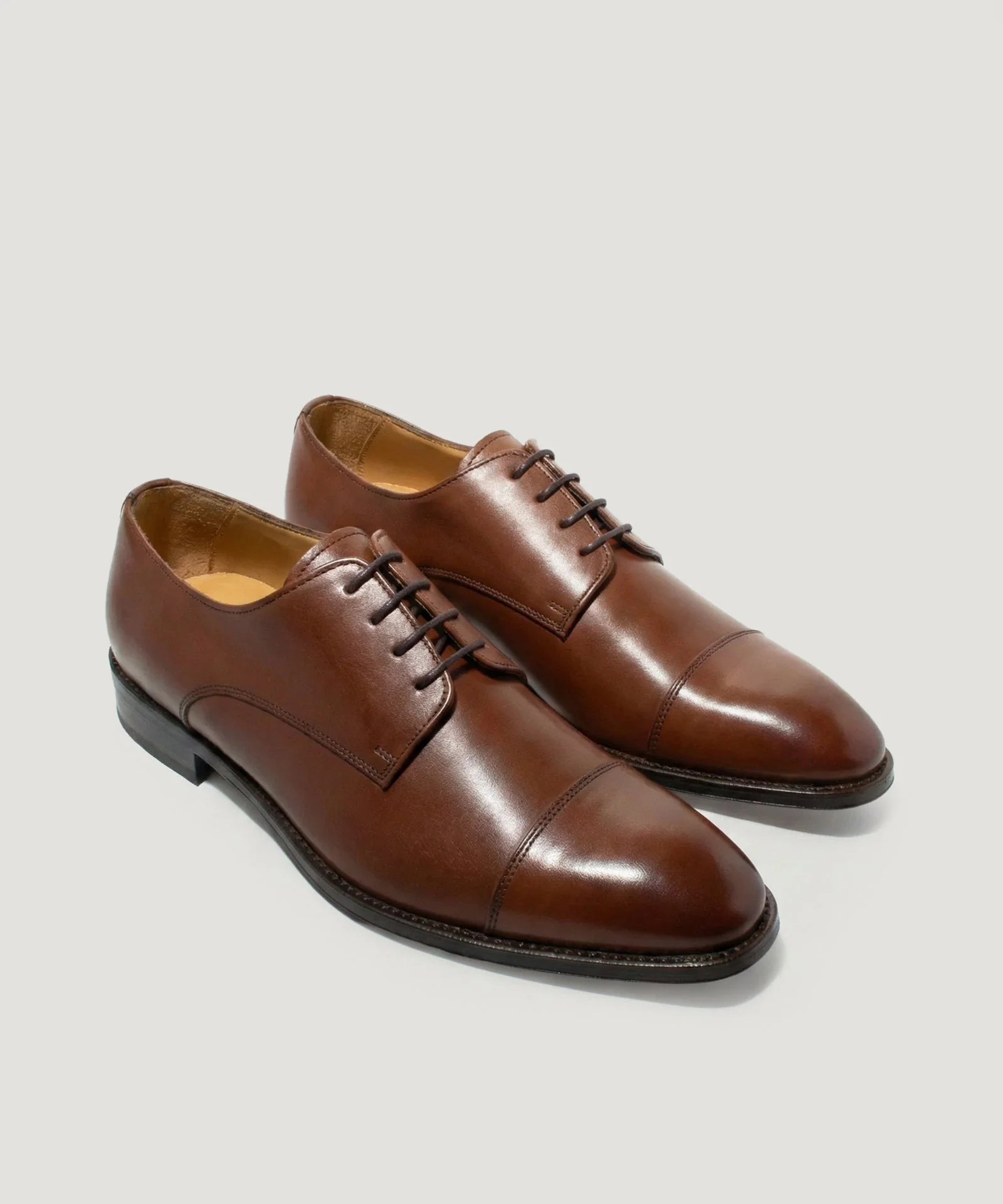 Cap toe derby veterschoen kalfsleer cognac